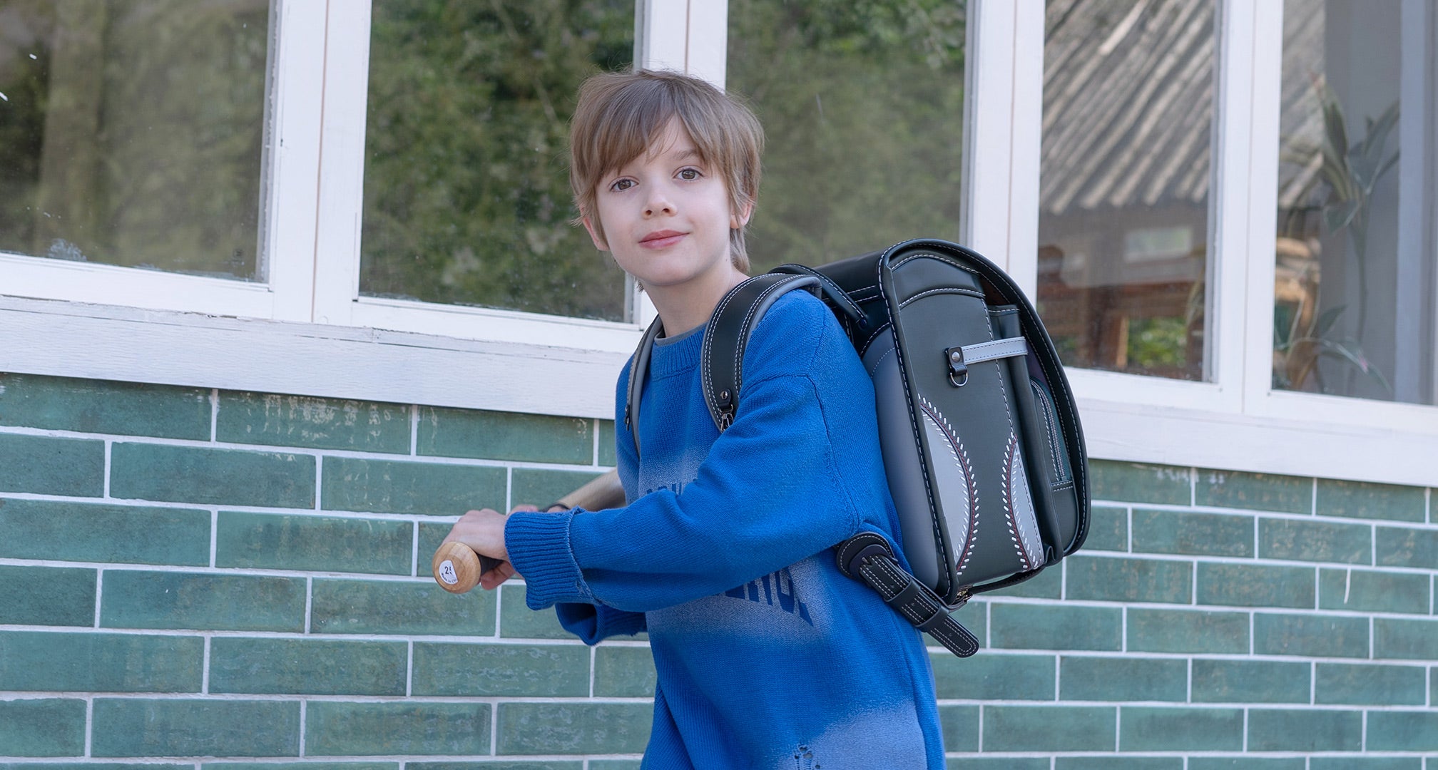 野球のボールを縫い目デザインの刺繍とパ ッチワークレザー工法を強調し、みのあるダークトーンの奥行きと洗練された雰囲気を象徴するランドセルです。
